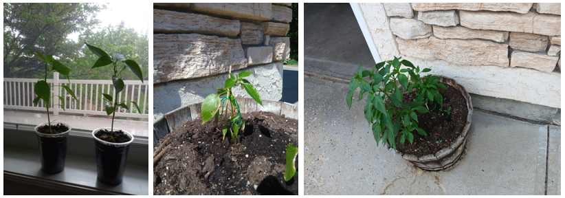 귀한 두 개의 고추모종, 지지대를 세워 주었다. 유난히 바람과 비가 많았던 날씨에 지금까지 고작 고추 한 개를 따 먹은 게 다지만, 앞으로 많은 고추가 열리길 기대한다.