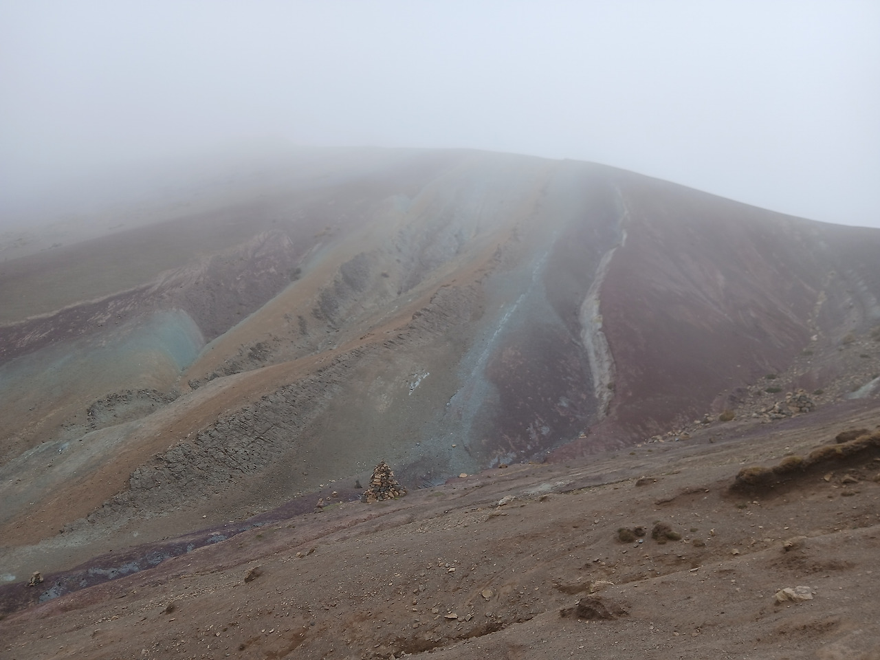 작년 크리스마스 때 페루 항공권을 산 이후, 1월 내 생일에 아들에게 책을 선물 받았다. 영어판 페루 여행서의 베스트셀러인 Lonely planet에서 발간된 페루 여행안내서였다. 페루 여행 책자라면 표지가 당연히 마추픽추여야 하는데, 이 책의 표지에는 알록달록 말 그대로 무지개 같은 산이 대문을 장식하고 있었다. 그 표지 사진을 통해 나는 처음 무지개 산을 알게 되었고, 마추픽추에 이어 이곳이 내 페루 여행의 새로운 버킷 리스트가 되었다. 무지개산 (Rainbow Mountain)은 Vinicunca로 더 많이 불리며, 쿠스코에서 남동쪽으로 4시간 정도 떨어진 곳에 위치하고 있다. 해발 5,200m에 위치한 이 산은 지구 온난화로 15년 전에 빙하가 녹으며 발견되었다. 산의 일곱 가지 색깔은 사암, 셰일, 자갈, 석회암 등의 물질이 퇴적되고 또 화학적 산화 과정을 거치면서 형성되었다. 이런 지질 형성은 안데스 산맥을 만든 조산 운동의 결과이기도 하다.