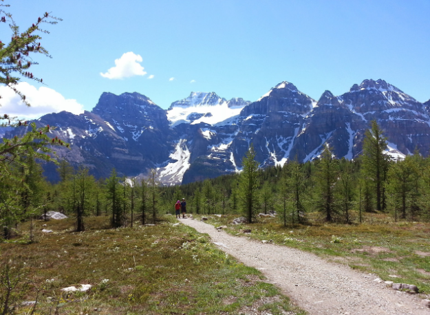 Moraine Lake에서 시작해 Larch Valley를 지나 Sentinel Pass까지 이르는 코스는 우리 가족이 하이킹을 시작하고 처음 오 년 정도는 우리가 꼽는 가장 아름다운 코스였다. Yoho national park의 Iceline 하이킹 후 이곳은 2위로 밀려났고, Onion Peak를 하이킹 후 이곳은 3위로 밀려났다. 하지만 이곳은 여전히 멀리 한국에서 캐나다 록키 등산 패키지여행으로 오는 분들이 꼽는 꿈의 코스이다. 날아다니는 공룡 브랜드(아크테릭스)로 모자부터 가방 옷 신발까지 갖춰 입고, 멀리 한국에서부터 오셔서 비장하게 이곳을 오르는 등산객분들을 여름이면 꼭 만난다.