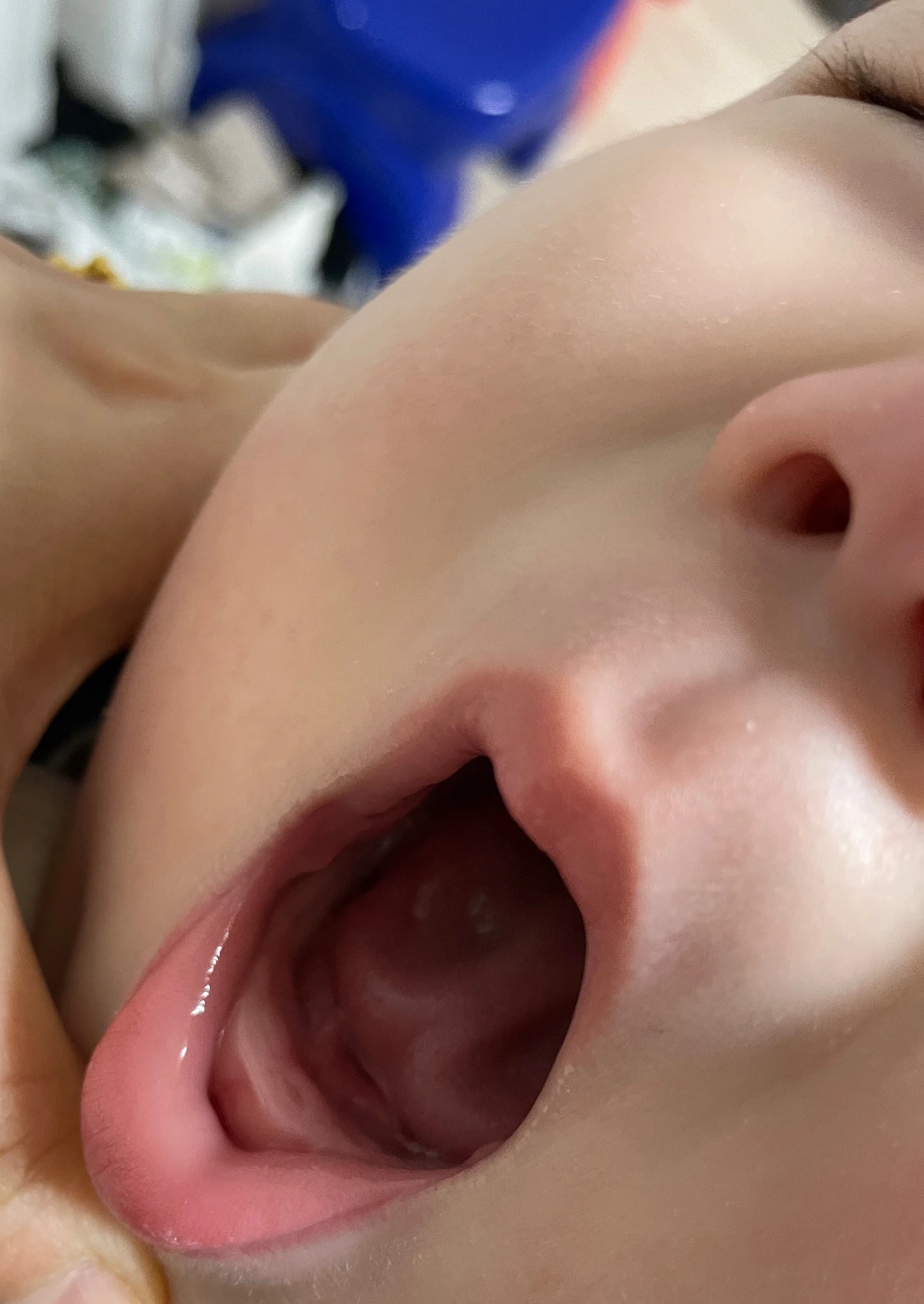 둘째 정준이 아랫니가 드디어 나오려고 해서 기념으로 사진을 한 장 찍었다.