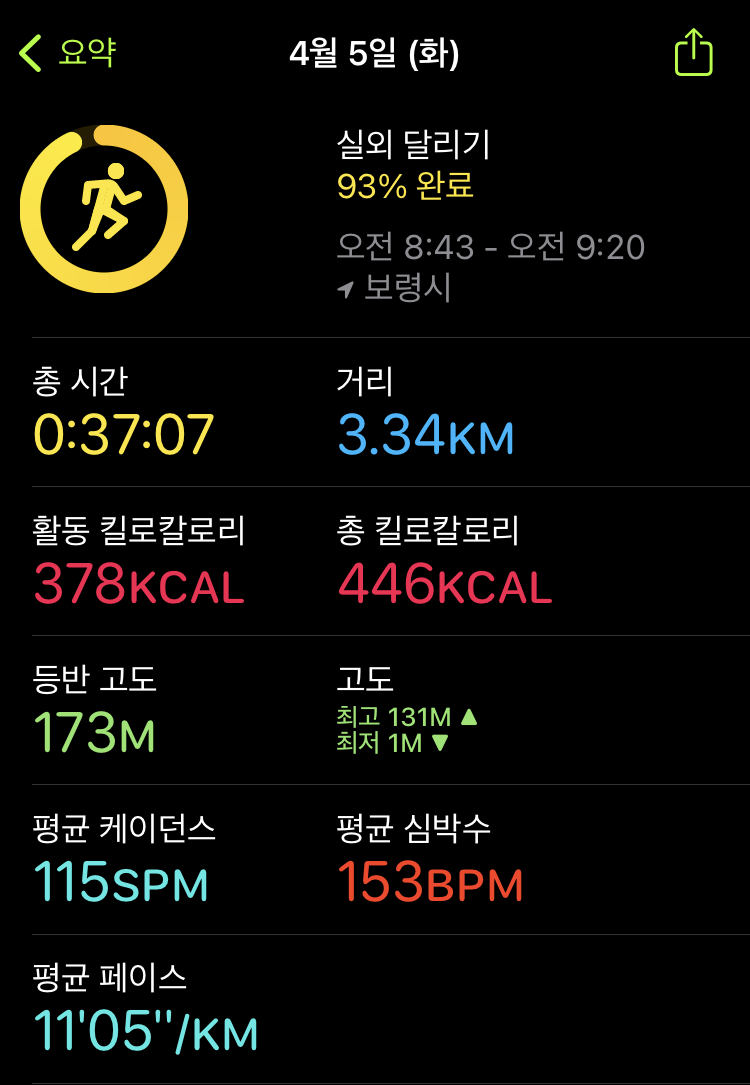 어제와 그제의 나태함을 벗고자 나름 트레일러닝을 해보았다.