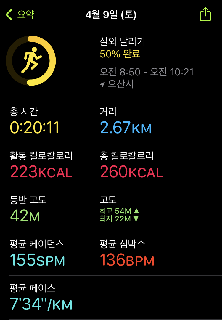 러닝 일기(22.04.09) 92일차