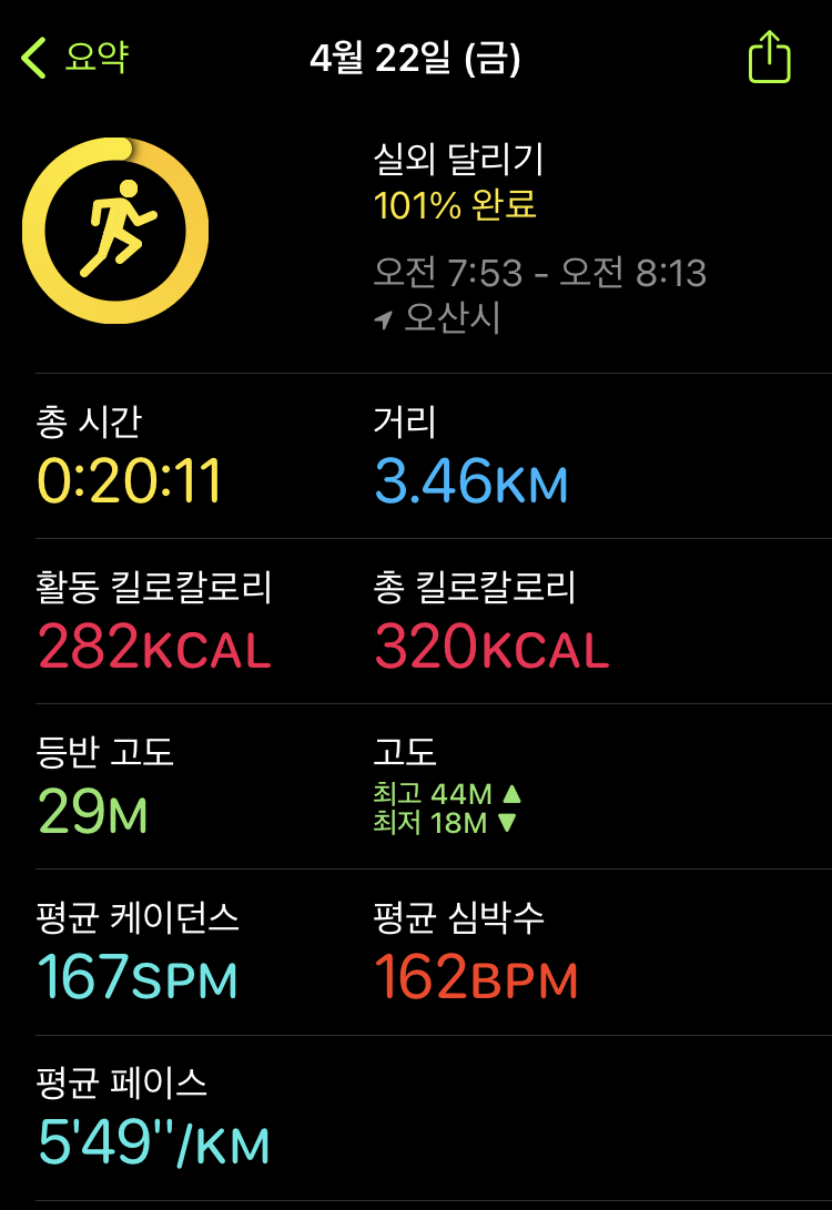 나태해졌는지 매일 러닝을 계속 못하고 있다.