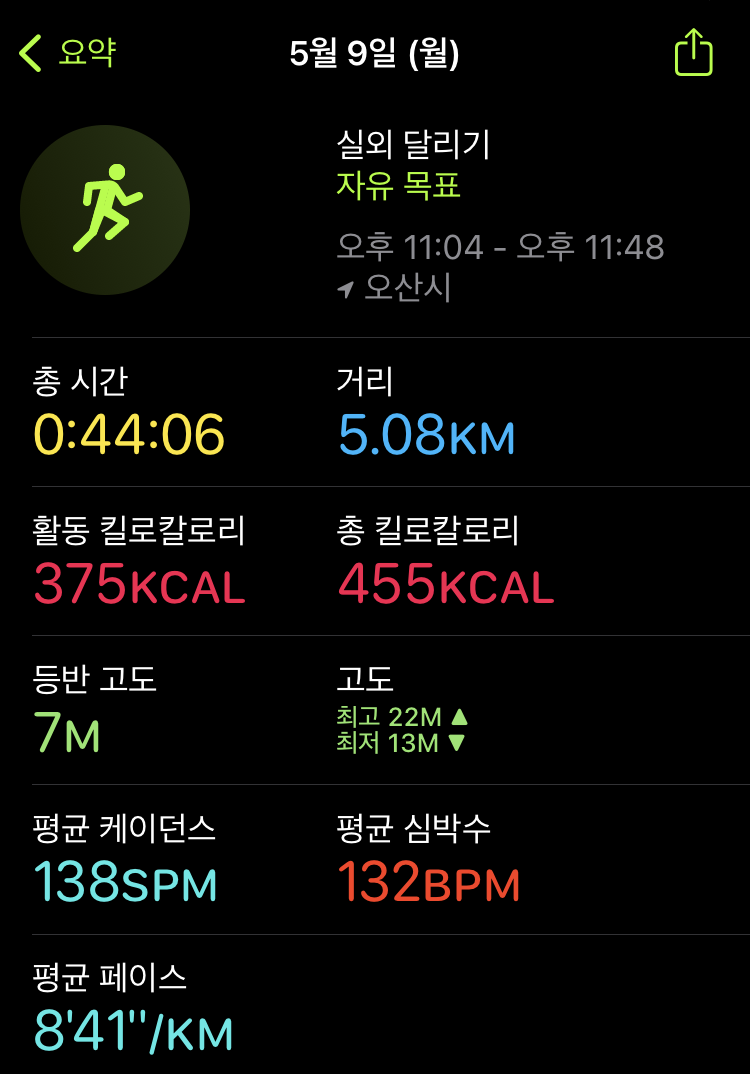 러닝 일기(22.05.08) #111