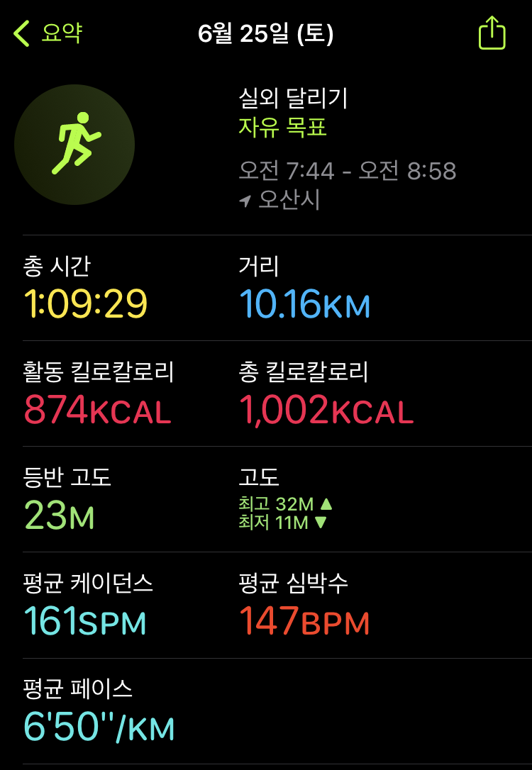 처음 달리기를 시작했던 올해 초에는 상상도 못했던 일이다. 내가 10km를 달린다니.....