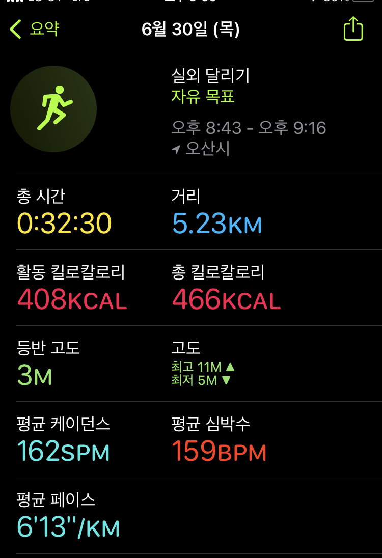 러닝 기록(22.06.30) #151