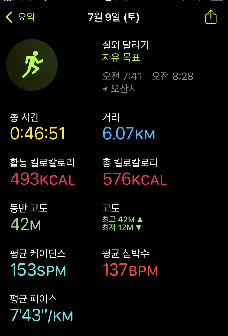 러닝 기록(22.07.08) #155