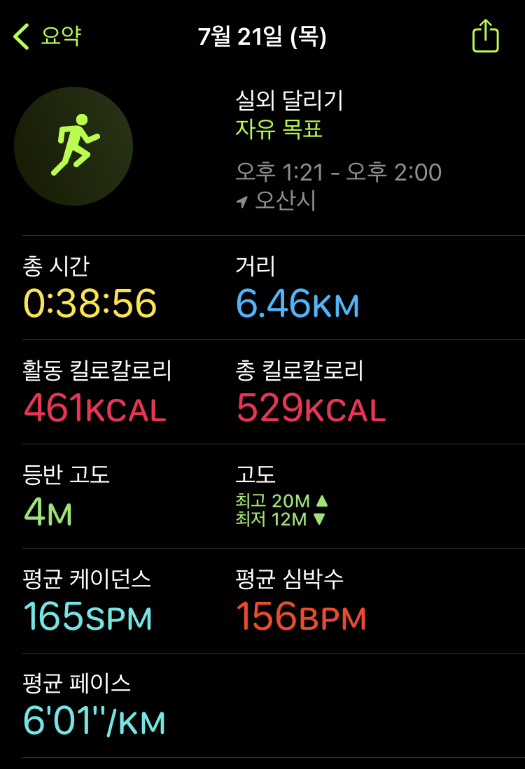 러닝 기록(22.07.21) #163
