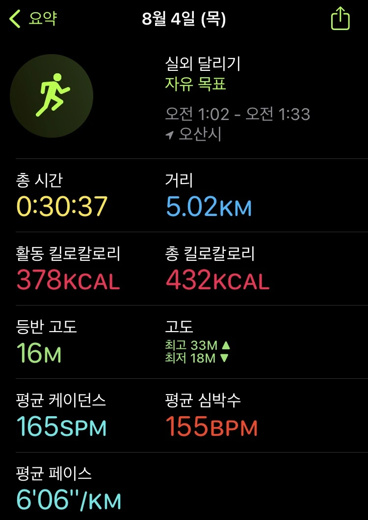 러닝 기록(22.08.05) #174