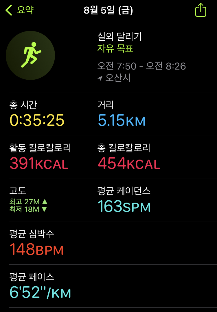 러닝 기록(22.08.05) #174