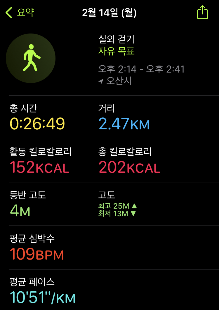 몸 컨디션이 조금 좋지 않아서 오늘의 러닝은 걷기로 대체했다.