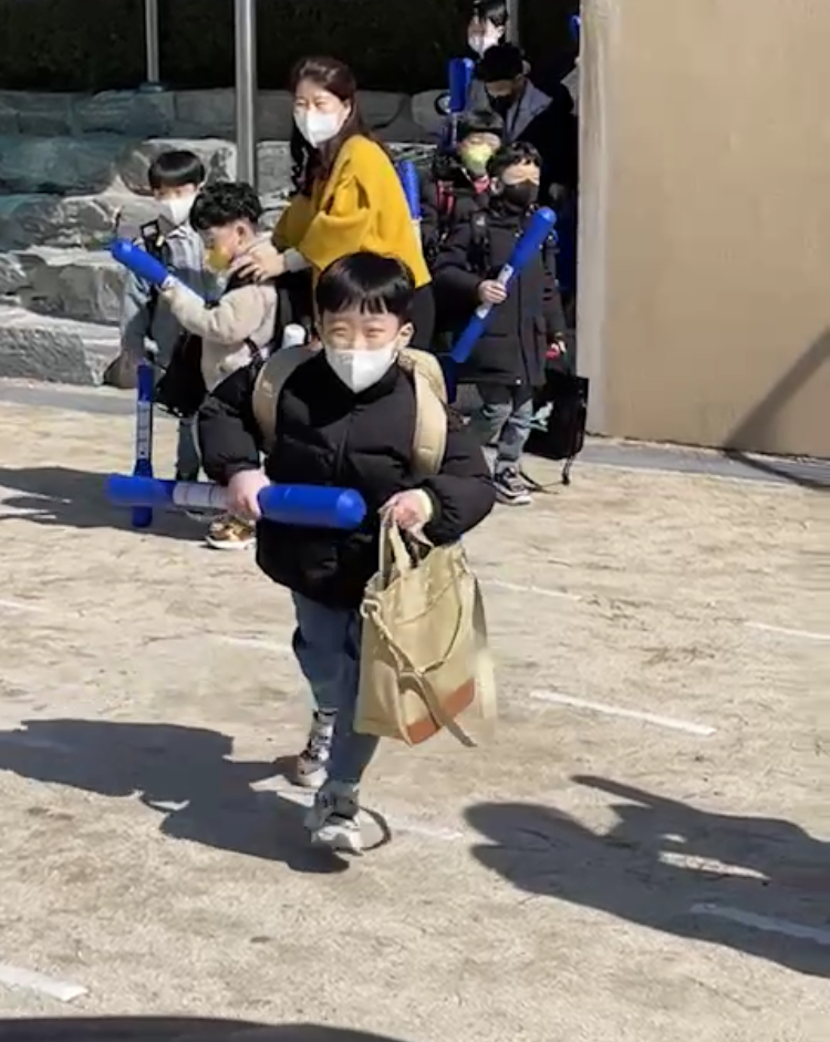 정운이가 오늘 처음으로 초등학생으로서 등교를 했다.