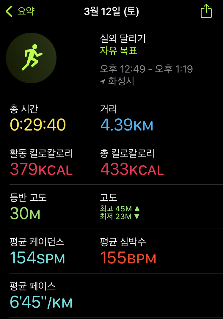 러닝 일기(22.03.12) 64일차