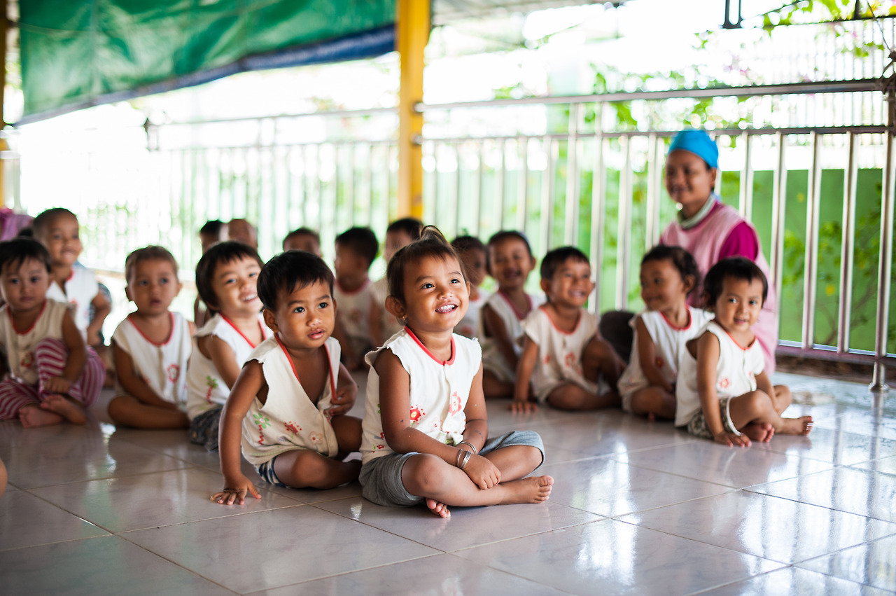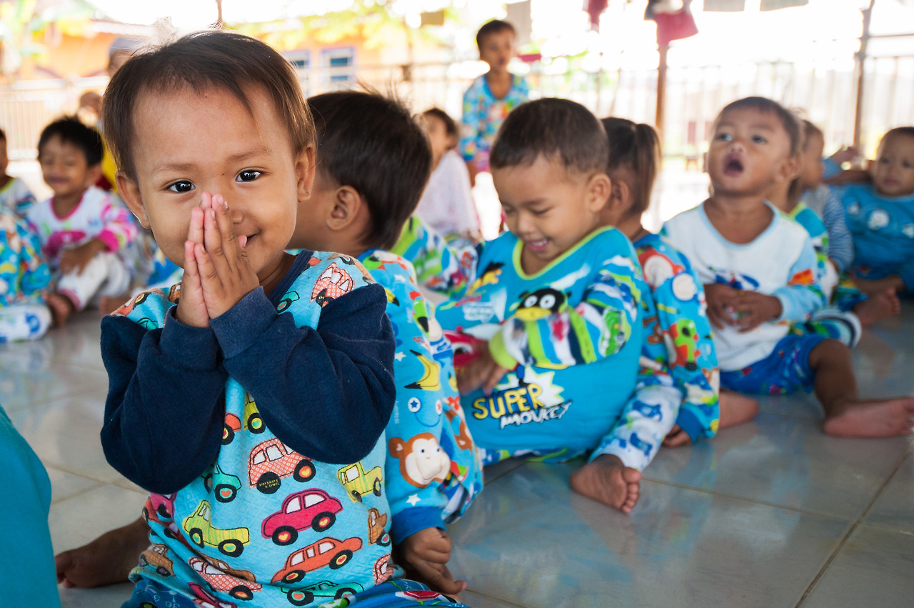 Hyeseong, the manager starts checking attendance & greeting the children.