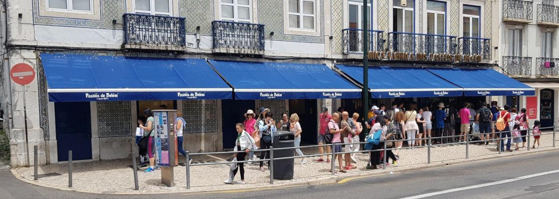 벨렘 탑을 보고 나와, 노점에서 오렌지 주스를 한잔씩 마신다. 자전거처럼 생긴 페달을 직접 밟아 믹서기를 돌려 짜 먹는 방식이다. 주스를 들이키며 포르투갈 역사 이야기를 잔뜩 듣고, 제로니무스 수도원을 관람하고, 에그타르트가 처음 만들어진 가게에 들어간다. 파스데이스 드 벨렝(Pasteis de Belém), 벨렝의 파스데이스. 옆에 있는 제로니무스 수도원에서 전수받은 레시피로 만드는 에그타르트다. 하나만 주문하려는 나에게 가이드는 적어도 두 개는 시켜야 섭섭하지 않다고 한다. 일반 에그타르트에 비해 달거나 느끼한 맛이 없고 무엇인지 모를 감칠맛이 돈다. 원조다운, 절대 실망하지 않을 맛이기는 하지만, 역시 내게는 하나만 먹는 게 깔끔했을 것 같다. 특히, 그다음 코스가 타임아웃 마켓이라는 리스본의 맛집이 모여있는 유명 푸드코트라면 더더욱.