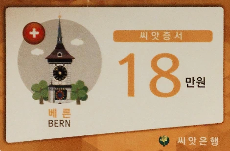 작년 겨울, 딸이 여섯 번째 생일 선물로 유치원 같은 반 친구에게 부루마블 게임을 선물로 받았다. 이 게임은 세계 각국의 도시에 땅을 사고, 호텔이나 빌딩, 별장을 지어 통행료를 받는 게임이다. 그중에는 물론 베른도 있다. 그런데 아는 사람은 알겠지만, 베른은 이 보드게임에서 그리 중요한 위치에 있지 않고, 부동산 값도 낮게 책정되어 있다. 이 도시의 카드에는 별로 유명할 것도 없는 시계탑-파리의 에펠탑이나, 런던의 타워브리지에 비하면-이 그려져 있다. 전혀 매력적인 부분이 없다.