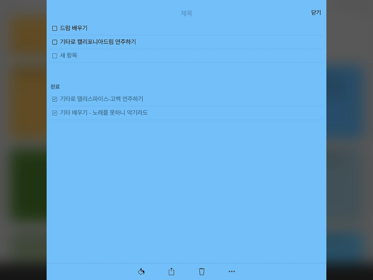 어쩌면 타고난 음치 유전자와 만성 박치 질환을 갖고 있는 내게 악기를 배우는 것 자체가 무모한 도전일지도 모른다. 중간에 ‘역시 나는 음악을 하면 안 돼!’라고 하며 또 포기할 수도 있다. 뭐 그러면 좀 어때. 백수에겐 하루하루 즐기는 것이 중요한데.