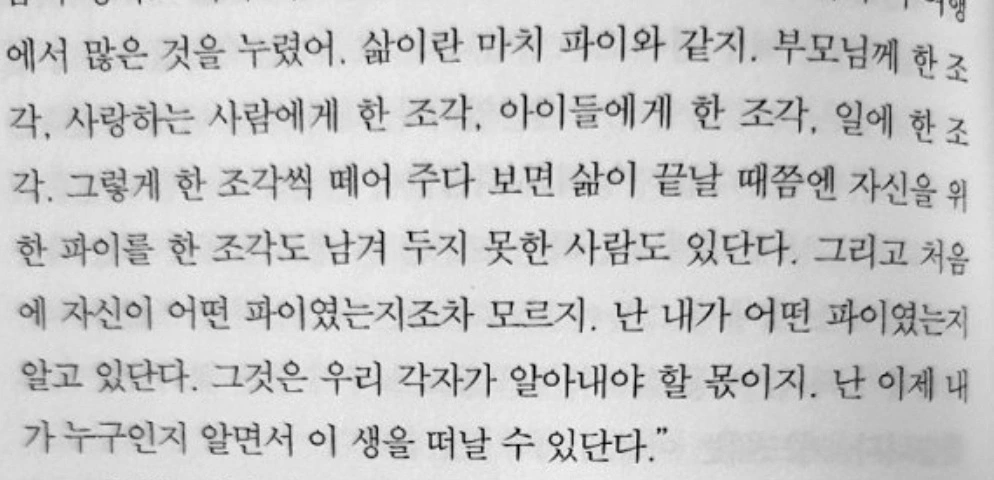 삶이 끝날 때쯤엔 자신을 위한 파이를
