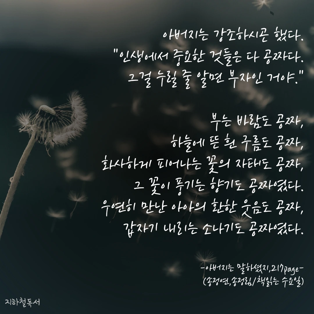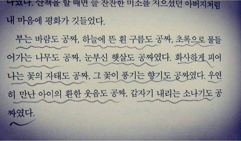 "인생에서 중요한 것들은 다 공짜다.