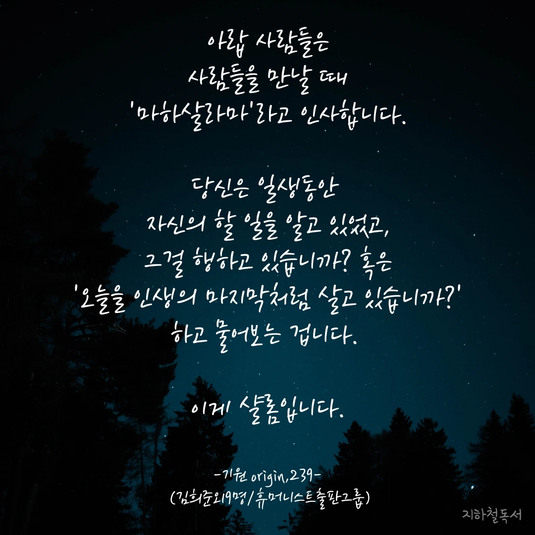'오늘을 인생의 마지막처럼 살고 있습니까?'