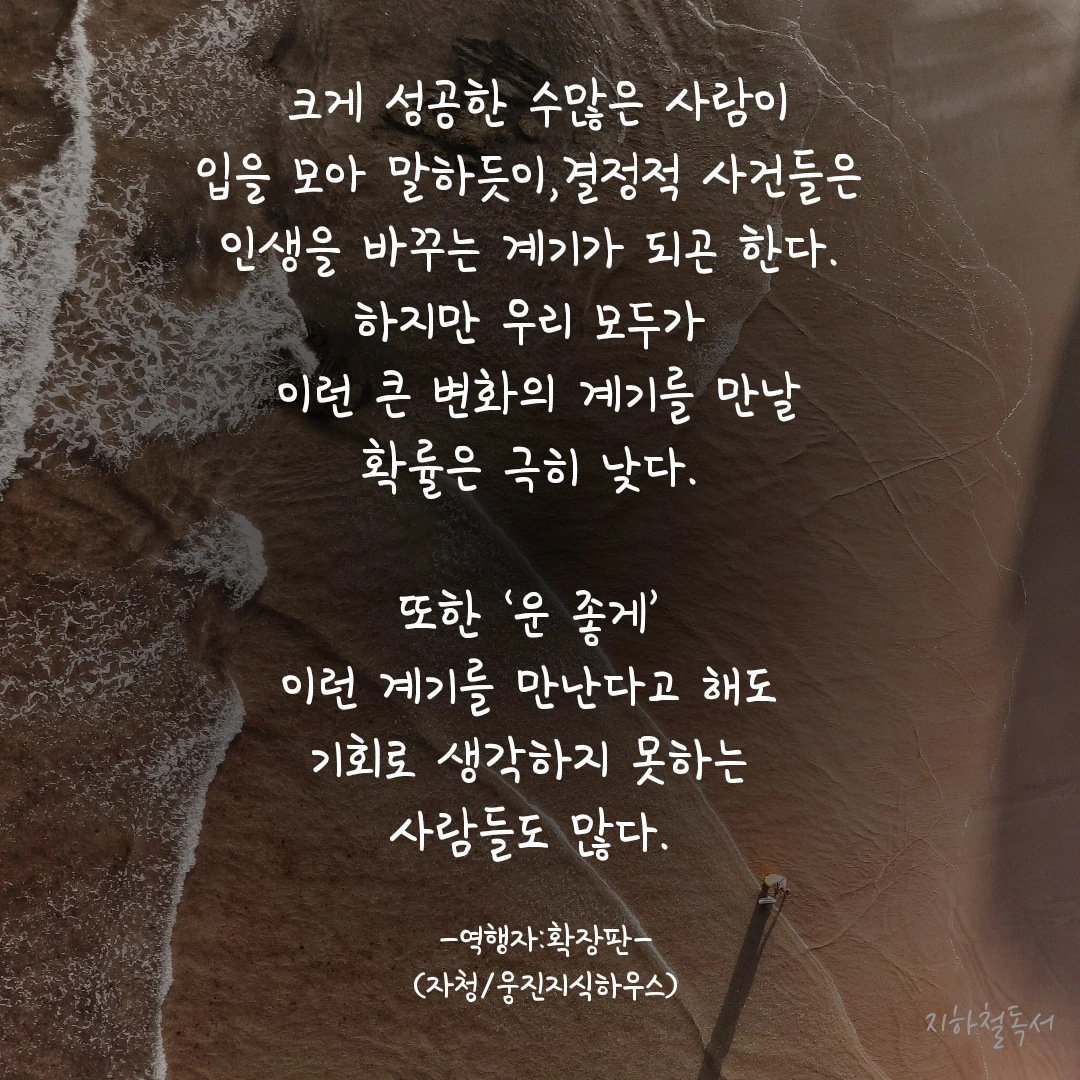 인생을 바꾸는 계기가 되곤 한다. 하지만 우리 모두가 이런 큰 변화의 계기를 만날 확률은 극히 낮다.