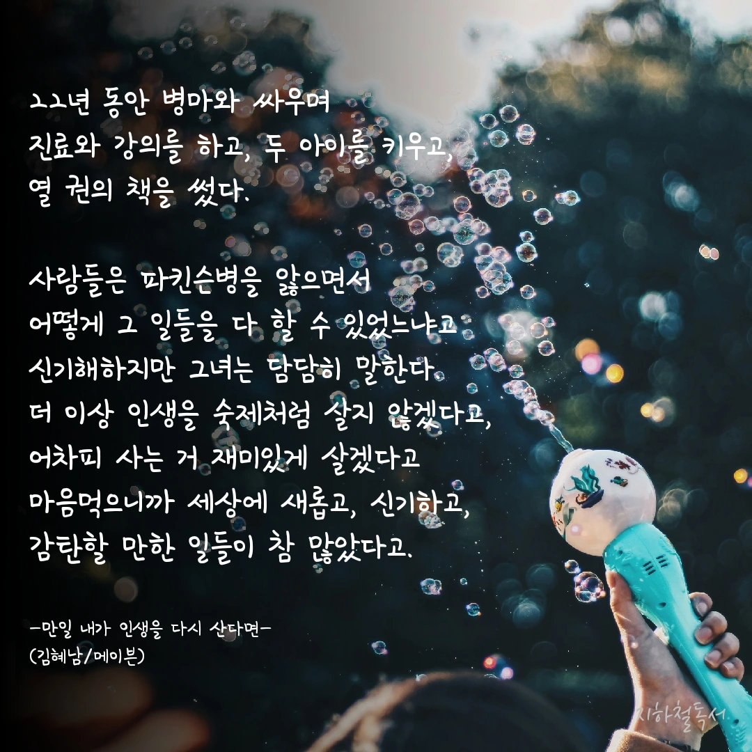 더 이상 인생을 숙제처럼 살지 않겠다고,
