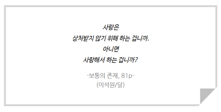 "그냥... 누구를 사랑한다는 거 자체가 무섭다."