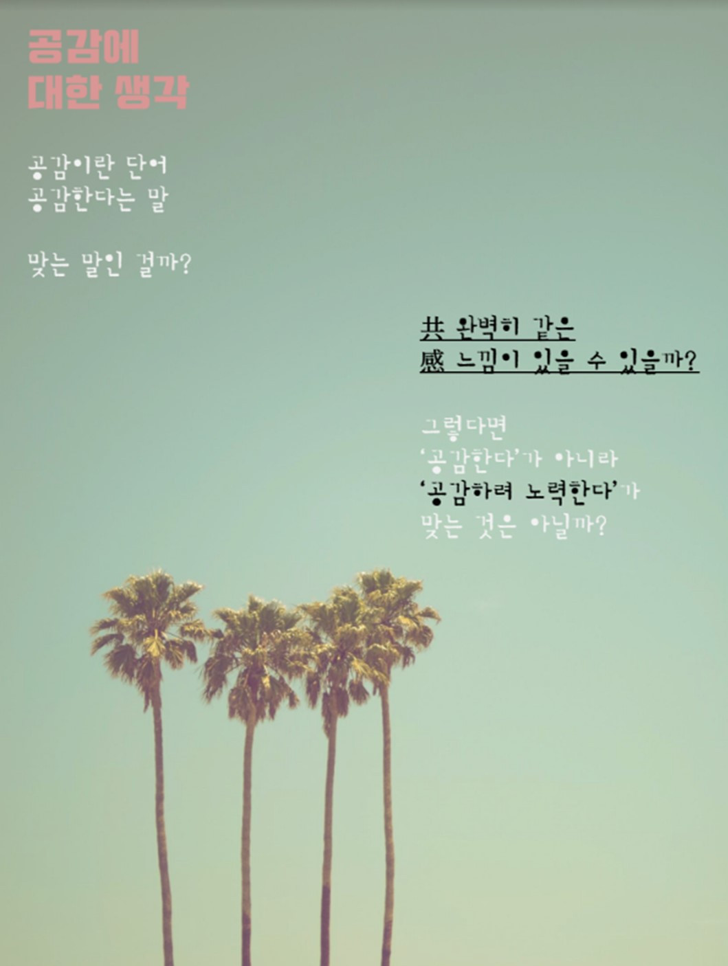 그렇다면 ‘공감한다’가 아니라 ‘공감하려 노력한다’가 맞지 않을까?