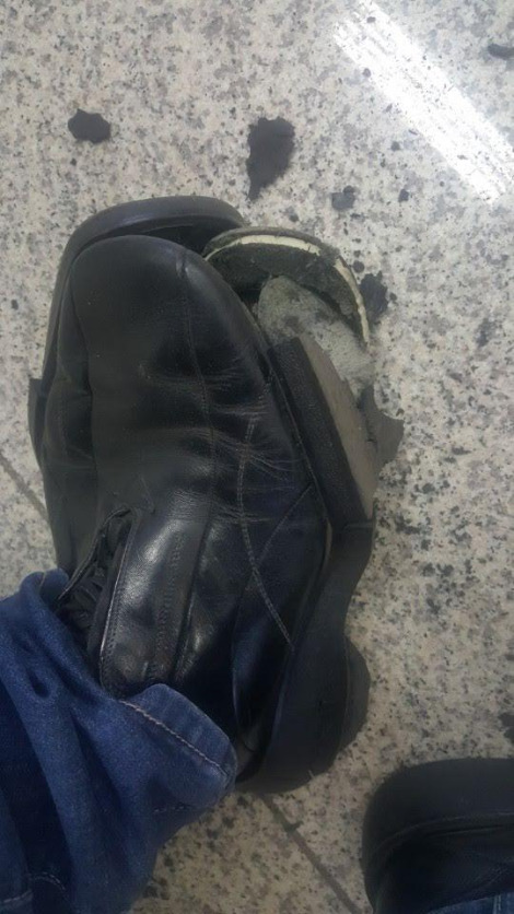 그리고 잠시 후 카톡을 사진 한 장이 왔다. 참혹한 신발의 모습...ㅎㅎㅎ