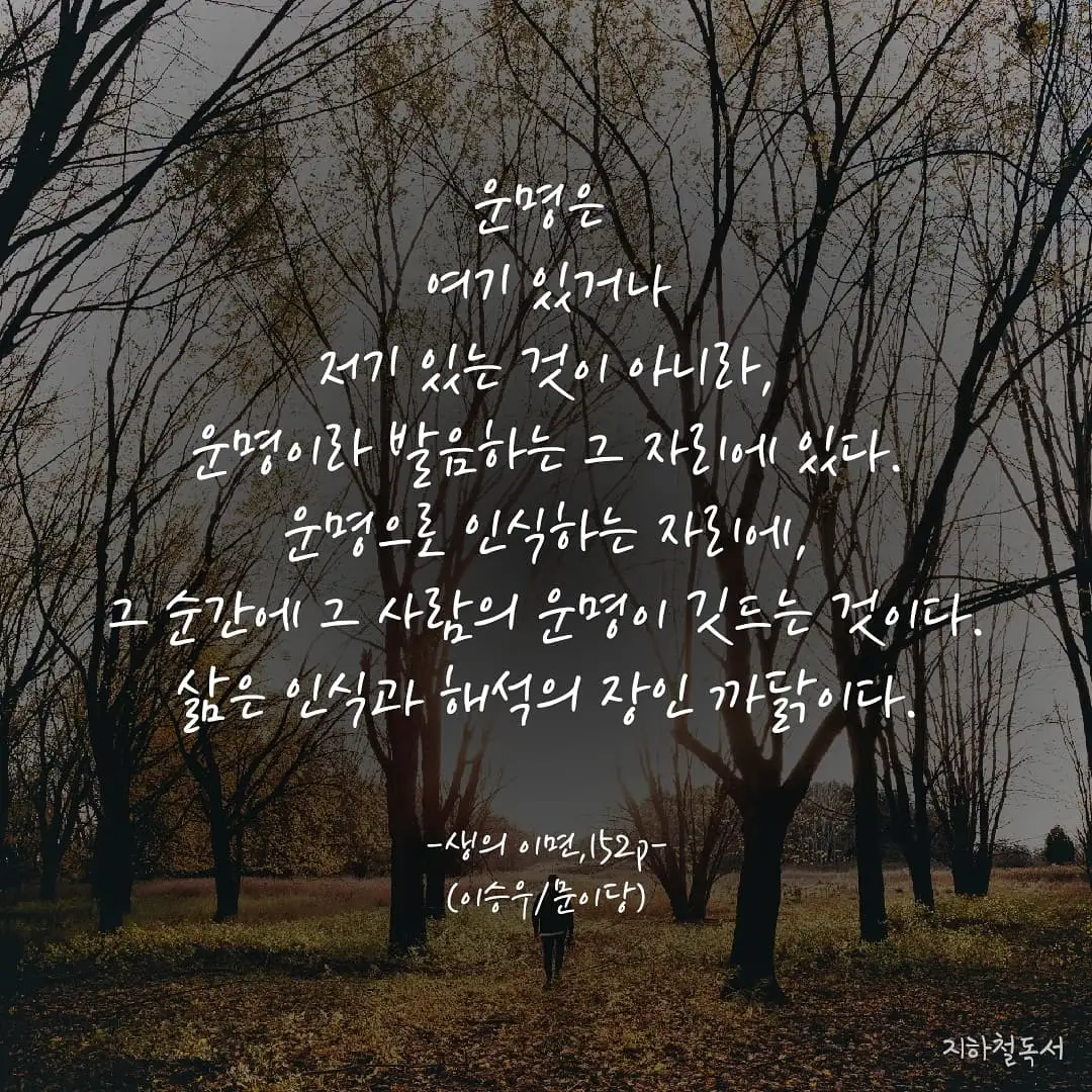 삶은 인식과 해석의 장(場)인 까닭이다.
