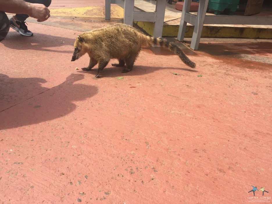 이과수 폭포 공원 곳곳에 이런 친구들이 돌아다녔다. 귀여워 보이지만 사람을 할퀴고 물기도 한다는 어마 무시한 친구. 너구리 같기도 하고 오소리 같기도 하고. 제일 웃긴 건 사람들이 먹는 점심, 간식을 모두 훔쳐간다는 것이다. 이걸 귀엽다고 해야 하나? 우린 멀리서 사진만 찍었다.