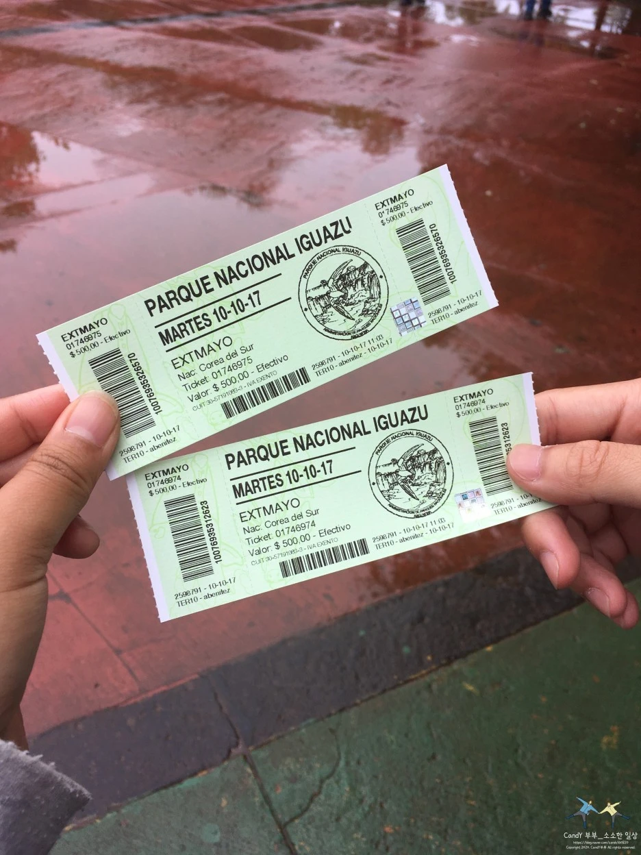 드디어 입장권을 받았다. 입장권을 찍은 사진만 봐도 비가 얼마나 왔는지 알 수 있다. 정말 다행이다, 다행이다를 계속 외치며 폭포로 향하는 기차를 타러 이동했다. 이과수 폭포라고 해서 한 군데만 있는 것이 아니고, 곳곳에 크고 작은 폭포들이 자리 잡고 있다. 각자 정한 코스대로 폭포를 보러 가면 된다. 우리는 가장 먼저 제일 깊은 곳에 있는 악마의 목구멍이라는 폭포를 보러 가기로 했다. 가기 위해 기차를 기다렸다. 그곳까지 가는 길, 기차가 우리를 데려다준다.