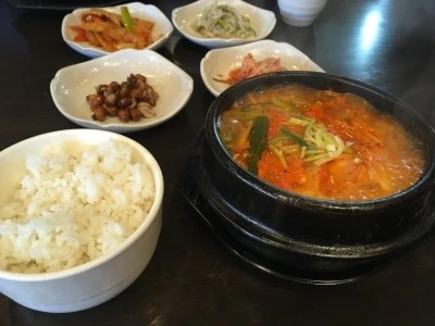오늘은 나도, 신랑도 풀타임 워커가 된 기념이자 결혼한 지 한 달 된 기념으로 외식을 하기로 했다. 원래 기념일은 이름 붙이는 대로 기념일인 거다. 오늘 저녁은 한식을 먹기로 했다. 정말 한식을 좋아하는데, 드디어 먹을 수 있었다. 우리가 갔던 식당은 내가 처음 이력서를 넣으러 들어갔던 그 한식당. 김치찌개, 된장찌개, 감자탕, 삼겹살, 소고기, 제육볶음, 오징어볶음, 순댓국, 안동찜닭 등 없는 것 빼고 다 있는 가게였다. 꼬리 갈비탕, 곱창전골, 치즈불닭, 치즈떡볶이까지 다 있었으니까. 그냥 웬만한 메뉴는 다 있나 보다. 오늘 선택한 메뉴는 감자탕과 김치찌개. 정말 행복했다.