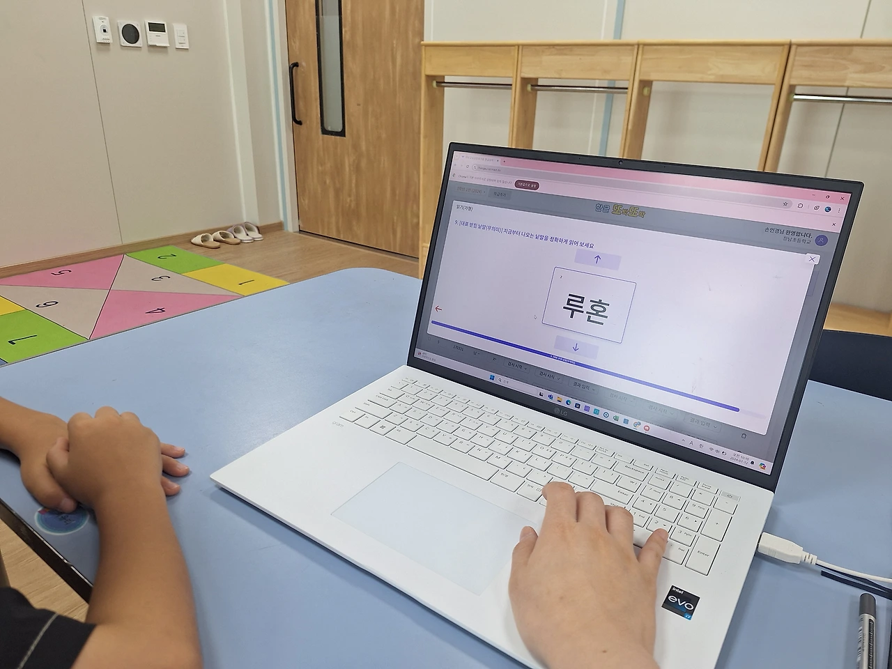 이렇게 둘을 앉히고 한글 집중 수업을 하면 교사가 훨씬 말을 많이 하게 되어 전체 수업을 할 때보다 더 힘들다. 40분 수업을 하고 나면 입에 침이 마르고 단내가 난다.