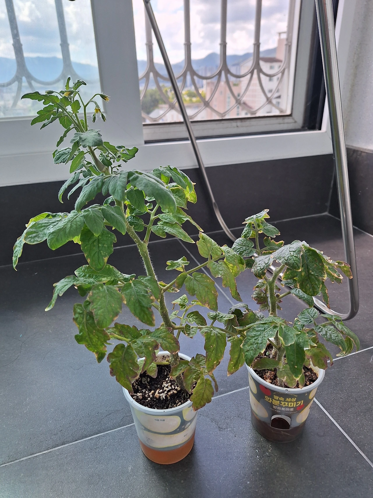 "어? 안 죽었네. 우리 집 토마토는 죽었는데..."