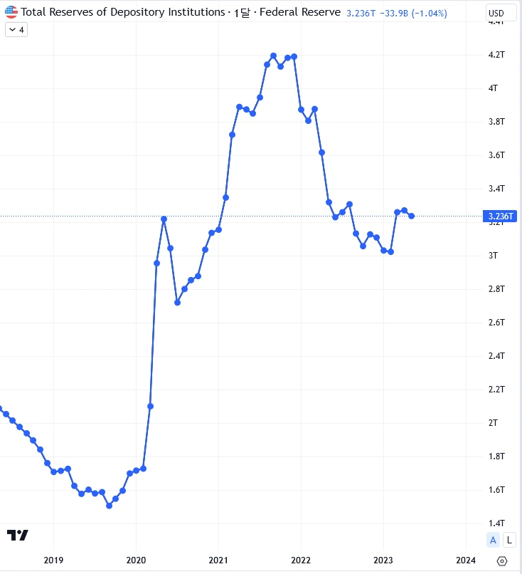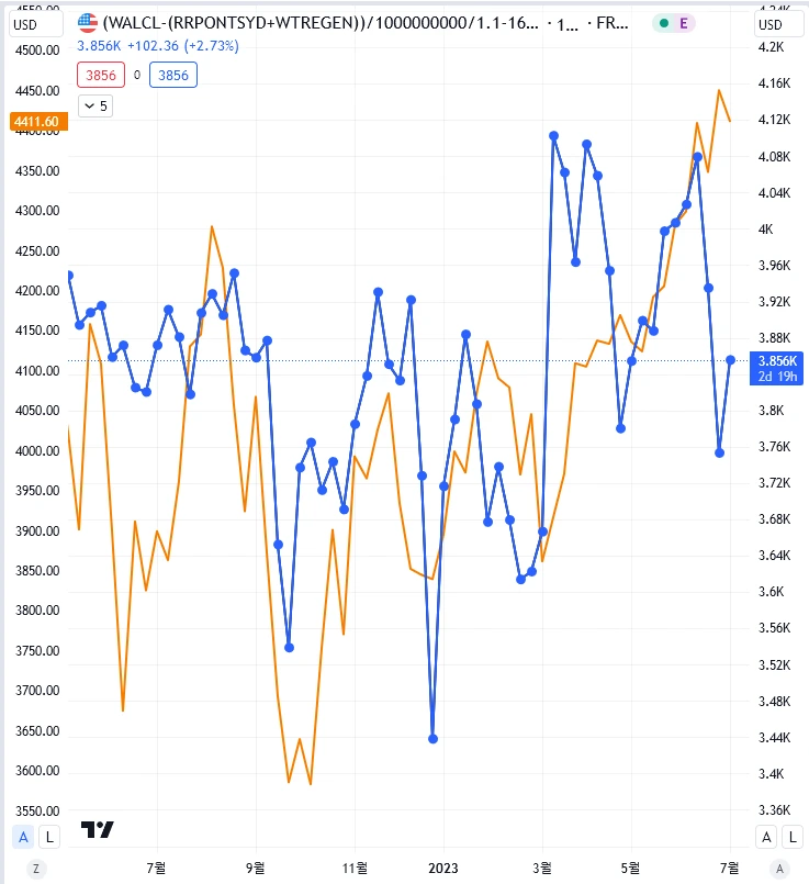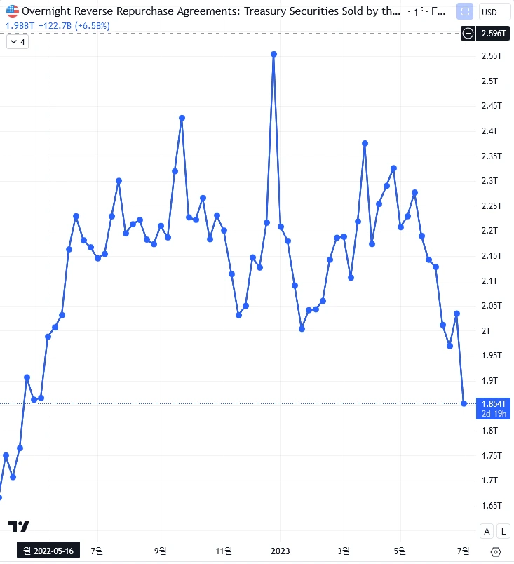 RRP 자금이 2T 아래로 내려감.