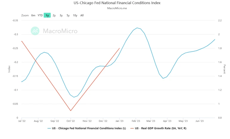 붉은 선은 미국의 실질 GDP YoY 성장률이다.