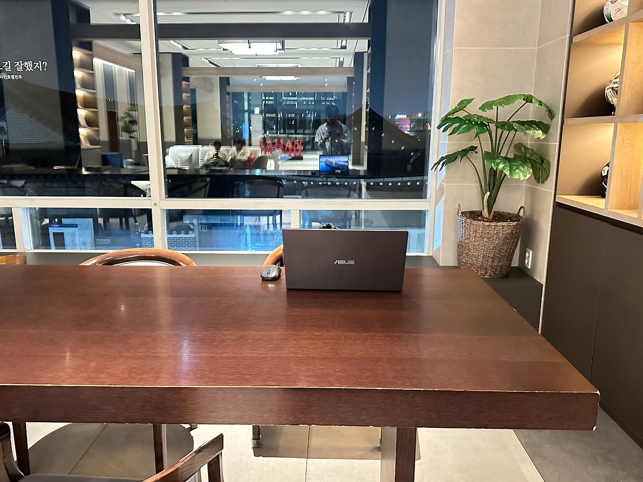 이번에 묵은 호텔은 한옥마을 근처였는데, 넓은 로비에 콘센트가 가까운 테이블이 있어 내심 반가웠다. 겉으로는 내색하지 않았지만, 아내는 ‘신났겠네’라고 생각했을지도 모른다.