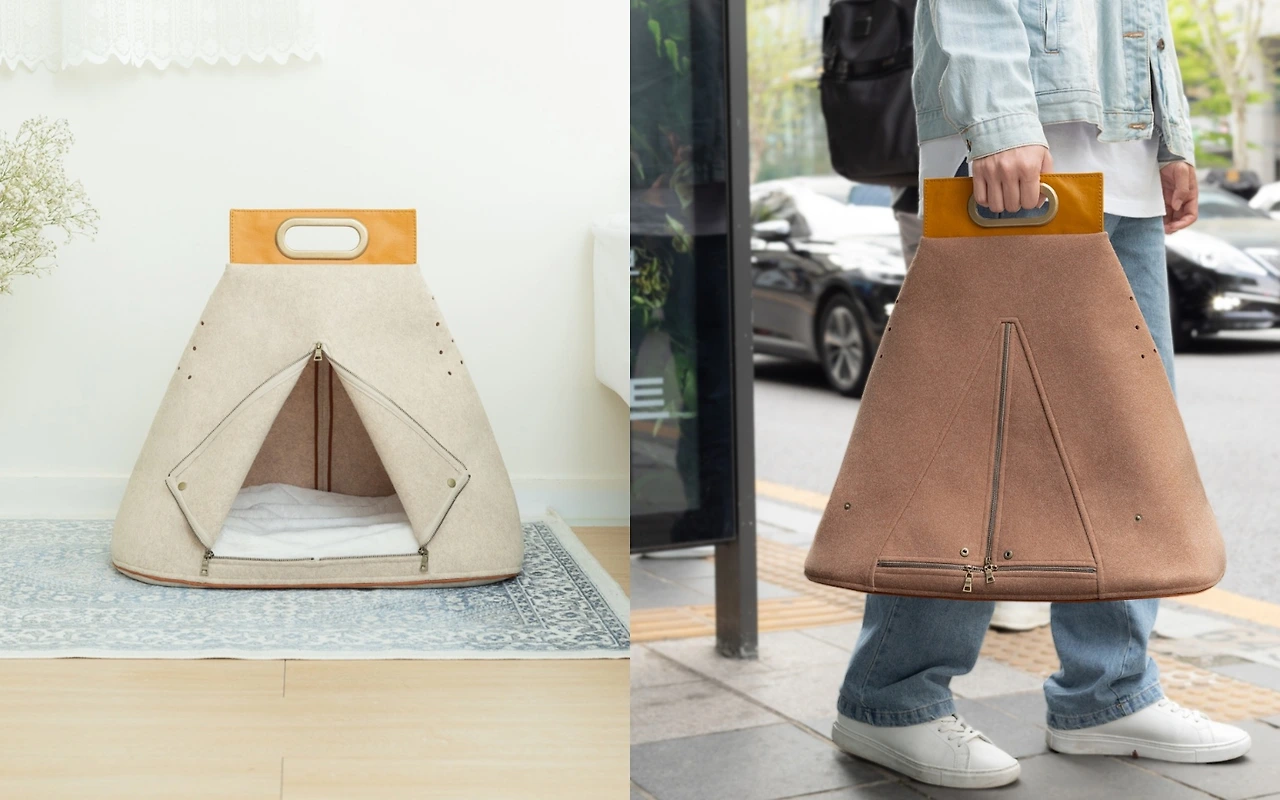 첫 브랜디드 제품. 고양이 이동장 겸 숨숨집, 쏙백(Sooak Bag). 고양이를 새로운 가정으로 입양할때 필연적으로 발생하는 영역 스트레스를 예방할 수 있도록 설계된 제품이다.