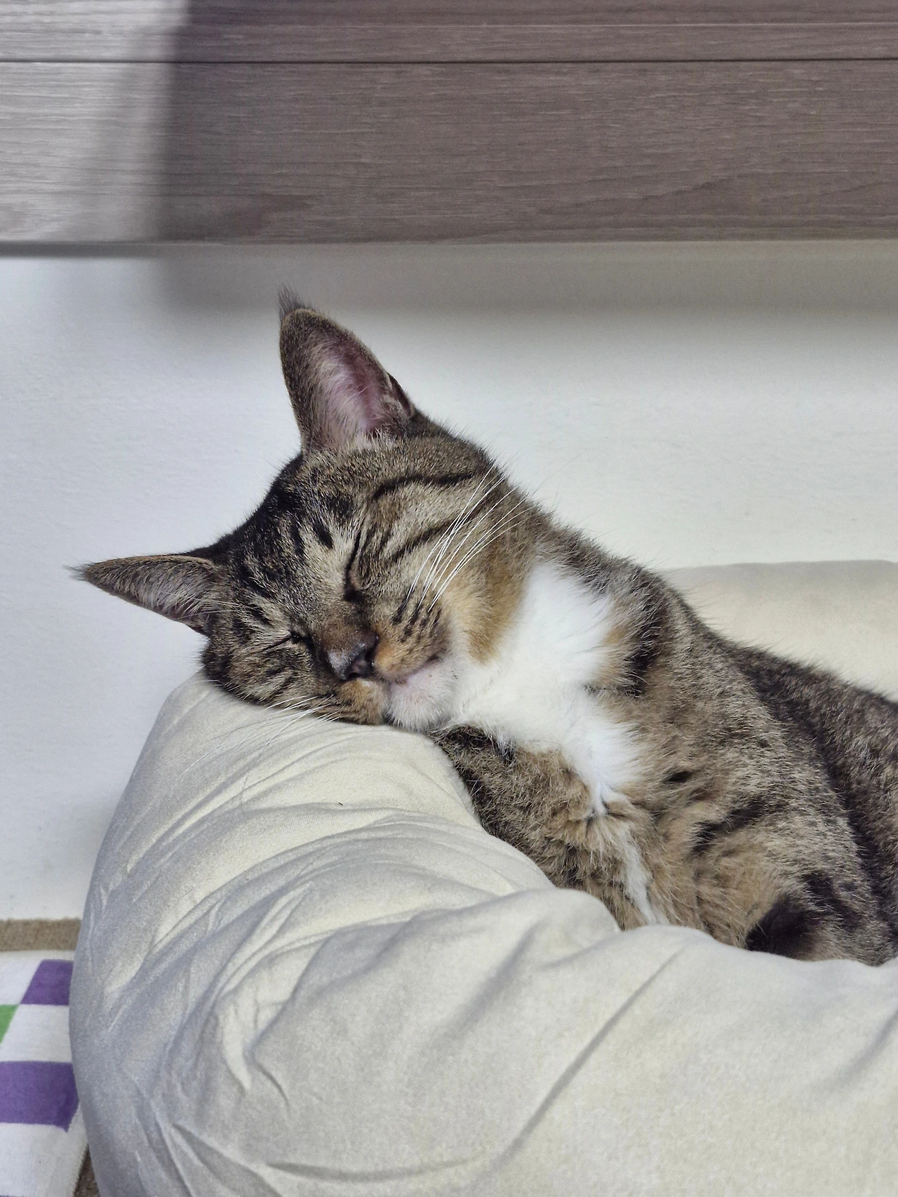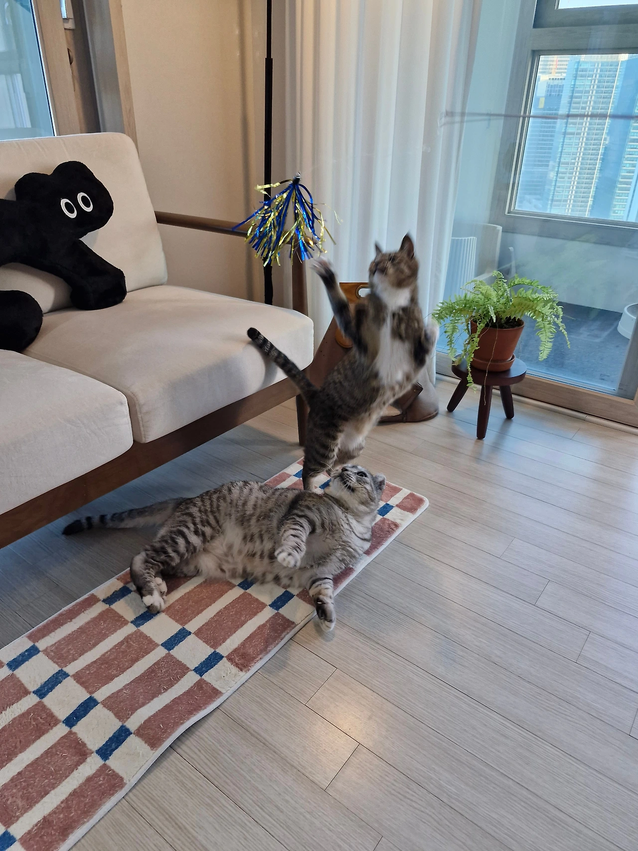 하지만 사람에게 애교를 부릴 때는 이런 아기 천사가 따로 없네요... 얼굴을 집사님 발에 부비기도 하고, 맨살이 보이면 조심스럽게 핥핥핥. 열심히 내 거라고 표시를 합니다. 거실에 앉아있으면 총총총 다가와서 삼각형 똥꼬를 보여주기도 하고 온몸에 얼굴을 부비부비하느라 정신이 없습니다.