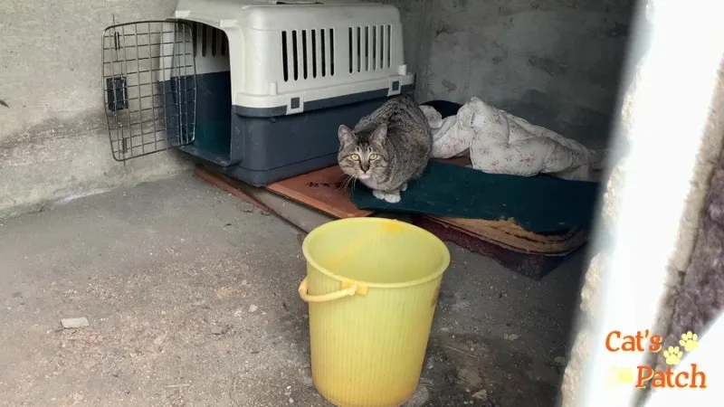 하지만 야생동물의 공격에 안전할지언정 이곳은 고양이가 건강하고 행복하게 살 수 있는 공간이 아니었습니다. 비바람과 더위, 추위로부터 은신할 수가 없고, 무엇보다도 흙에 배변을 하는 고양이의 본능과 다르게 흙도, 모래형 화장실도 없었습니다. 고양이에게 가장 필수적인 사냥도 할 수가 없었죠. 결국 알밤이의 구조가 결정되고, 알밤이는 2020년 천안 묘정 쉼터로 입소하게 됩니다.