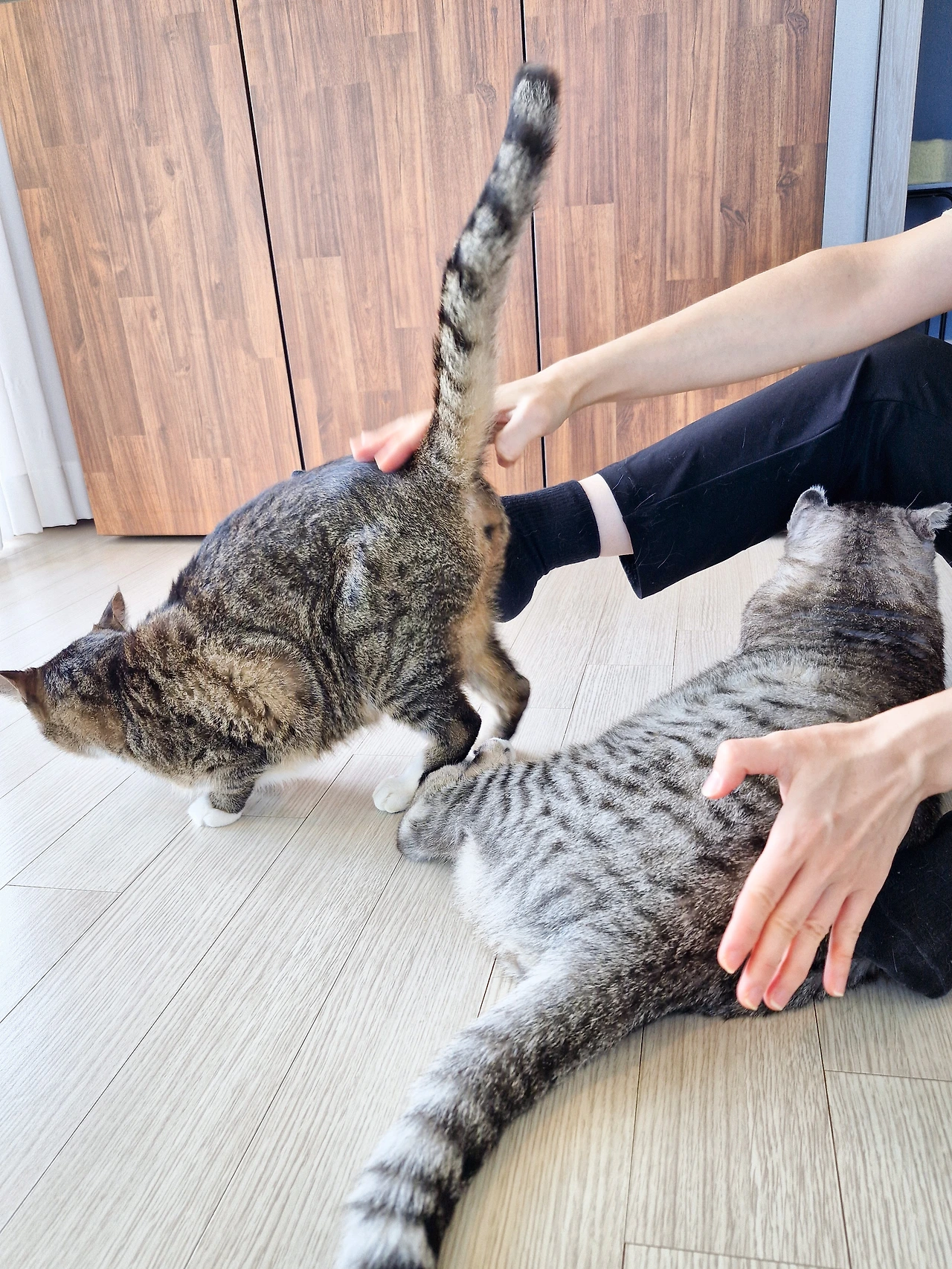 알밤이 호빵이는 애교가 너무 많아서, 양손으로는 궁팡을, 두 발로는 쓰담 쓰담을 해주었습니다. 코어 근육을 획득했습니다!