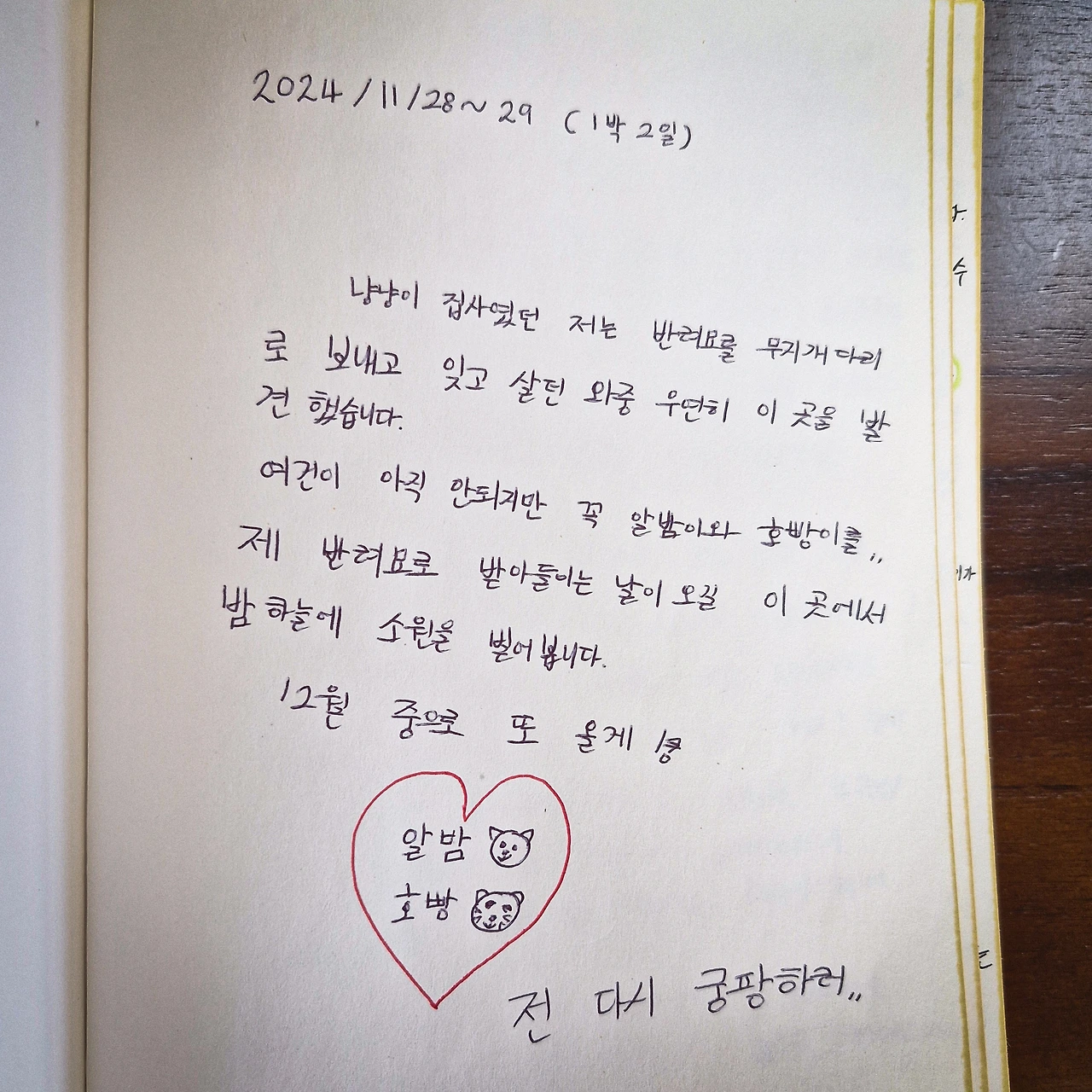 여건이 아직 안되지만 꼭 알밤이와 호빵이를.. 제 반려묘로 받아들이는 날이 오길 이 곳에서 밤 하늘에 소원을 빌어봅니다.