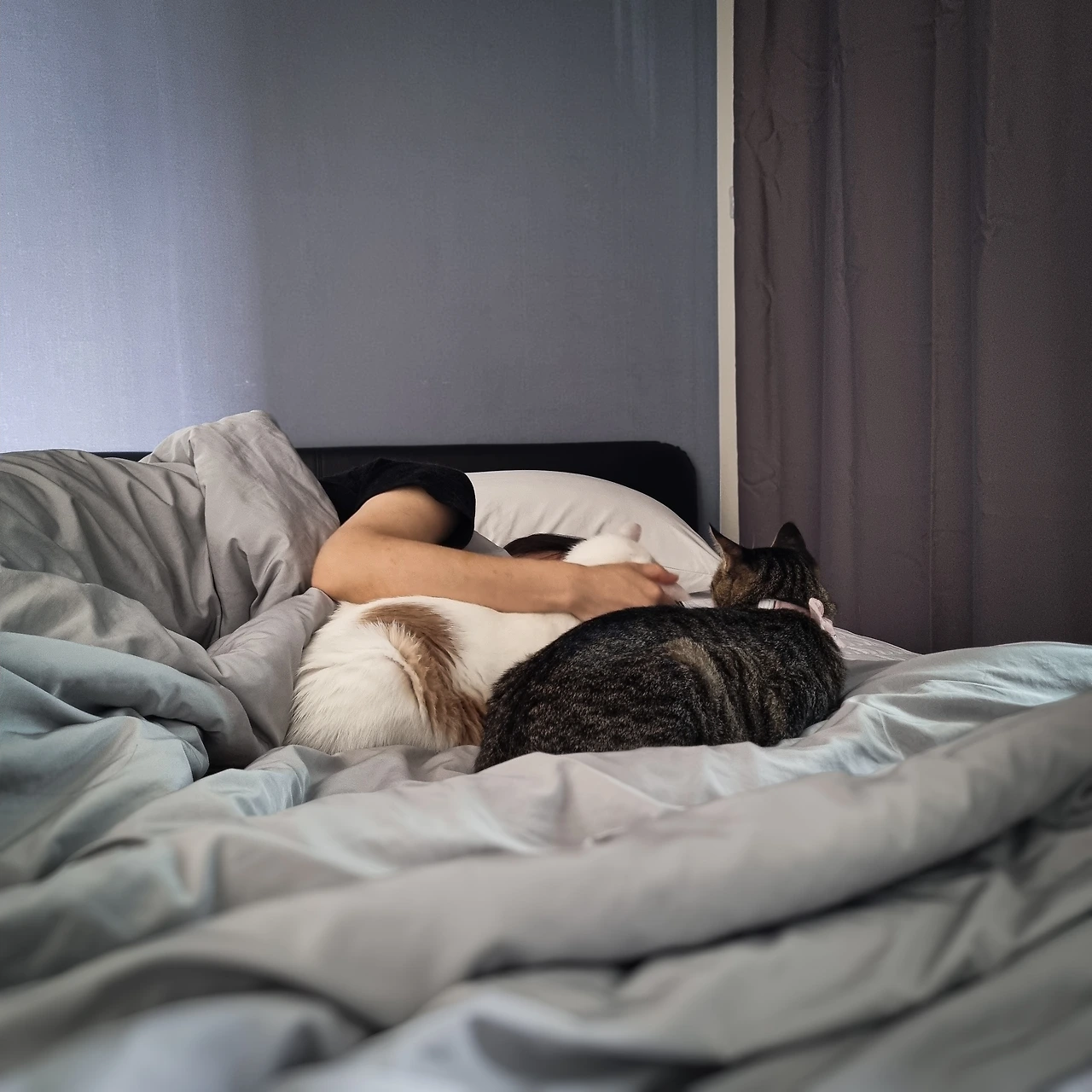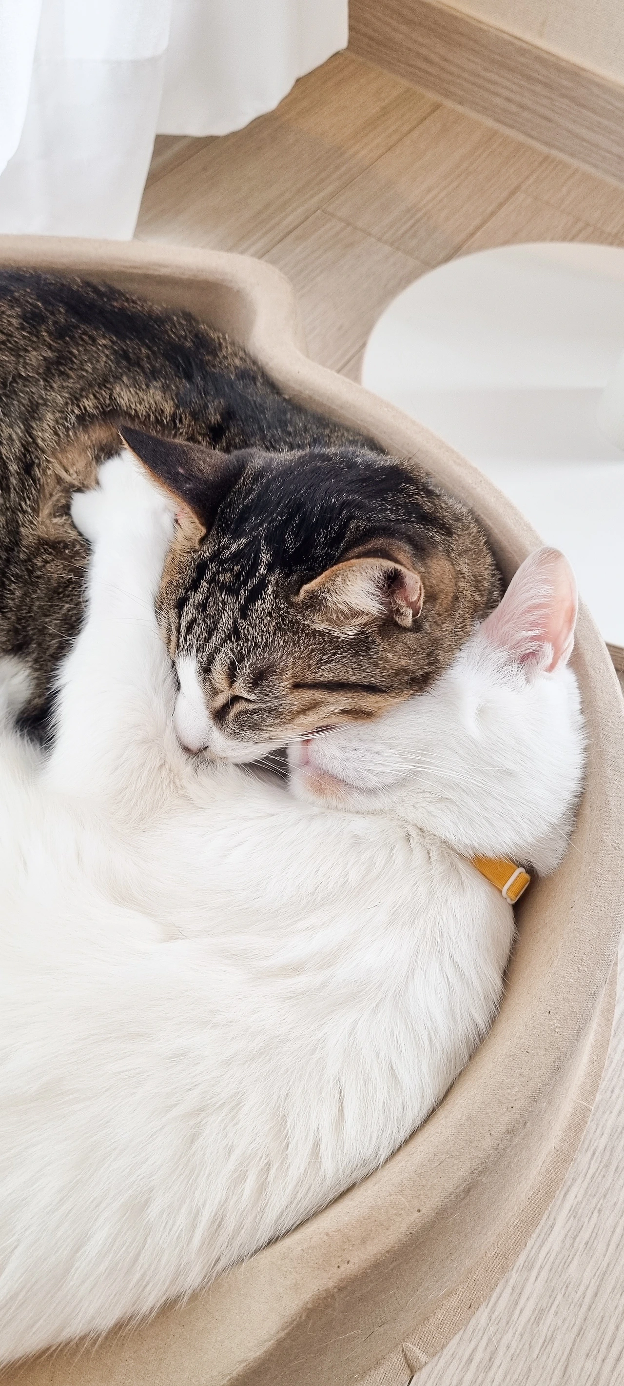 하지만 차돌이랑 우유는 나이도 다르고 출신지도 다르고 심지어 외모도 다르지만, 어느 한쪽이 옷장에 셀프 감금되거나 병원 외출로 보이지 않으면 한참 동안 서로를 찾아 헤맵니다. 잠을 자도 꼭 같은 자리에서, 한 몸이 되어 잡니다. 혹시 둘이 사귀는 게 아닐까 의심이 될 정도로요.