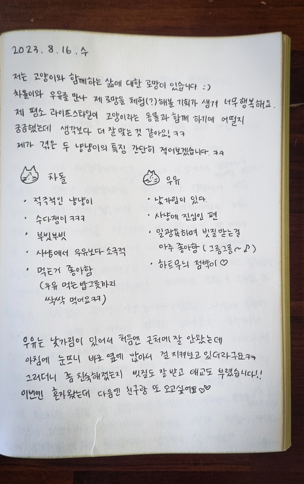 저는 고양이와 함께하는 삶에 대한 로망이 있습니다. : )