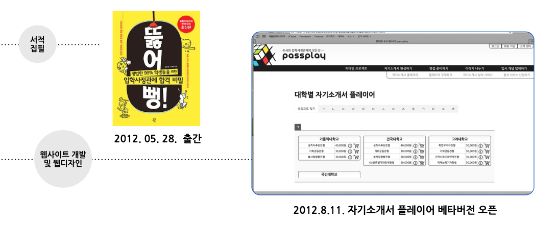 대학 졸업 후 개발했던 웹앱과 서적. 당시 이투스를 벤치마크 했었다.