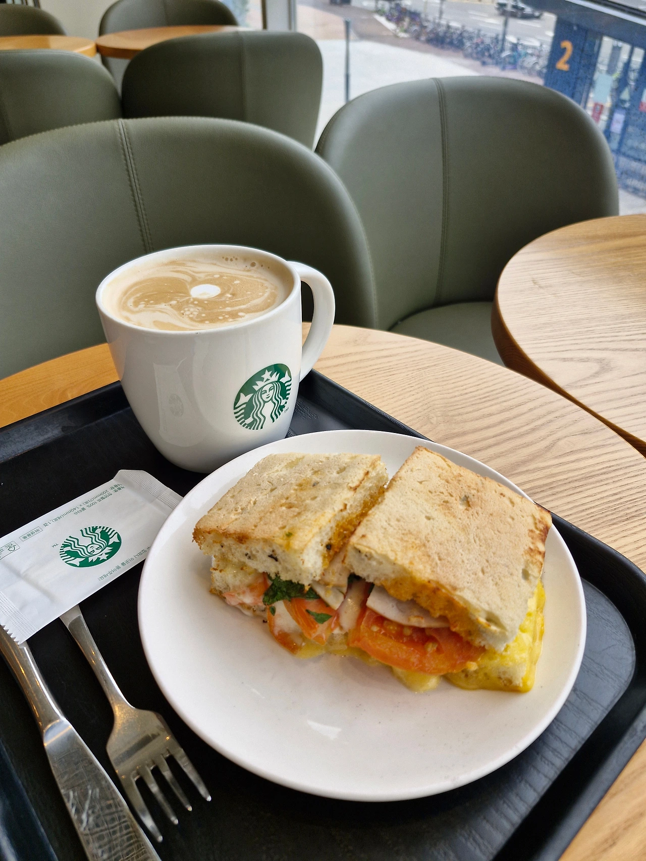 기다리던 휴일이 시작된 아침. 나는 7시부터 일어나서 친척 언니가 선물해 준 스타벅스 기프티콘을 들고 아침부터 카페로 향했다. 여유 있게 커피와 샌드위치를 먹으면서 그날 하루를 계획했다. 사실은 밀린 집안일과 청소를 하는 게 계획의 전부였지만, 나를 위해서 온전히 하루라는 시간을 쓸 수 있다는 게 너무나도 행복하고 감사했다.