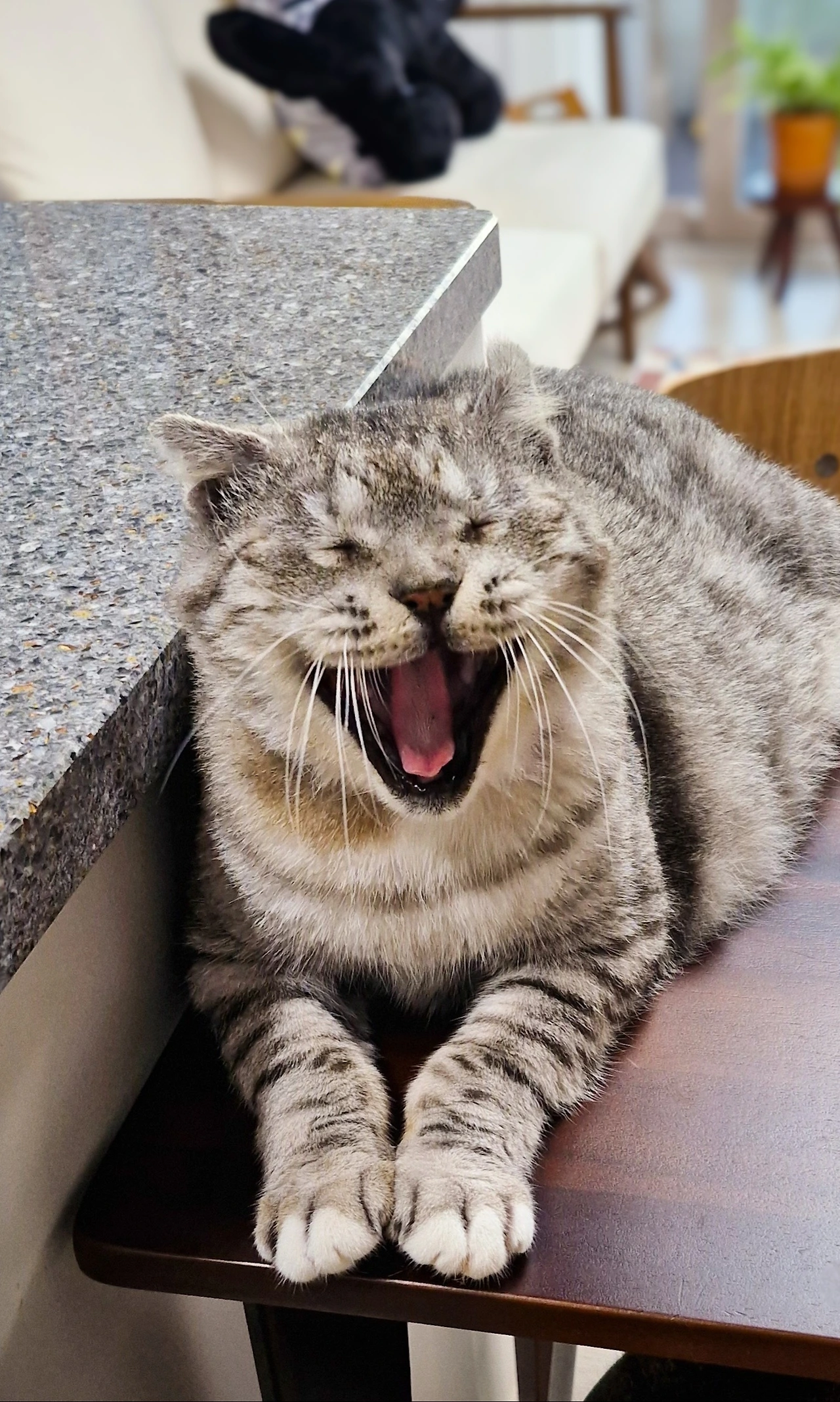그리고 호빵이는 뮤트형 야옹이라 말이 없기 때문에 그런 호빵이를 대신해서(?) 오늘 있었던 일을 조곤 조곤 들려줄 수 있는 그런 다정한 분께서 호빵이의 평생 집사님이 되어주셨으면 좋겠습니다. 눈을 지그시 감고 옆으로 누운 채 집사님의 브리핑을 가만히 경청해 줄 거예요. 호빵이의 이런 듬직함(?) 때문에 호빵이는 아기처럼 챙겨줘야 하는 느낌보다는 세상에서 내 이야기를 가장 잘 들어주는 친구 같은 느낌이 많이 듭니다.