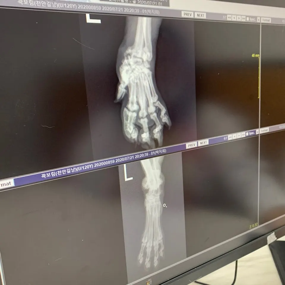 검사 결과, 다행히 종양은 아니었습니다. 발정이 온 시기에, 호르몬 작용에 의해 피부 조직이 섬유화가 된 것이었습니다. 그리고 구조 당시 팔다리가 퉁퉁 부어있었는데, 검사를 해보니 스코티시폴드의 유전병인 뼈 자가 증식이 진행된 것이었습니다. 그리고 나중에 알게 된 사실이지만 호빵이는 IBD(염증성 장 질환)를 가지고 있는 고양이였고, 그 결과 설사가 잦았습니다.
