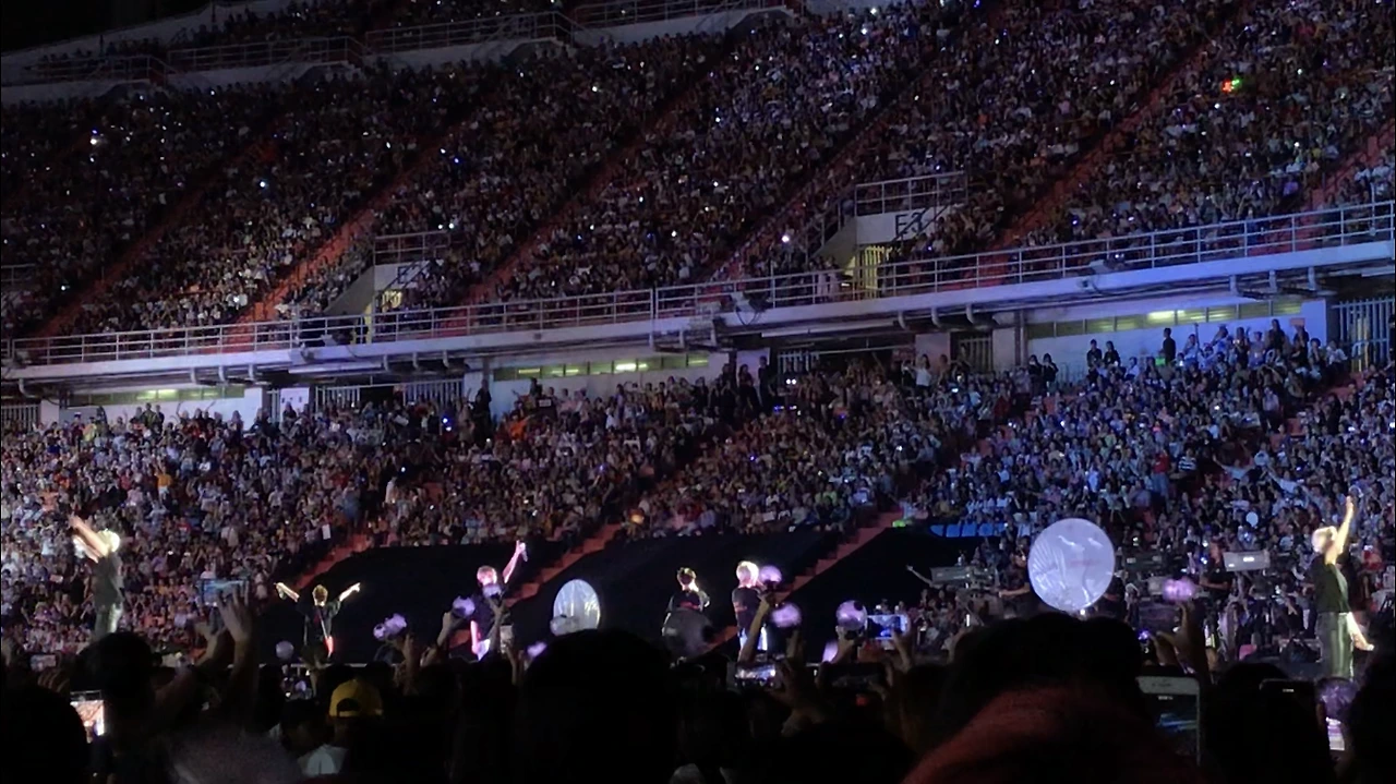 공연의 3분의 1쯤이 지나고 지민의 솔로곡이 시작되는데 갑자기 소나기가 내리기 시작했다. 눈에 형태가 보일 정도로 굵은 빗방울이었다. 우왕좌왕하던 찰나에 옆자리의 태국 팬이 본인의 우비를 함께 나눠 쓰자고 했다. 손에 들고 있던 핸드폰과 짐들을 가방에 넣은 뒤 의자 아래에 두었다. 비옷을 머리에 얹고 태국 팬에게 감사함을 표현했다. 공연은 딜레이 없이 계속됐다. 팬들과 함께 비를 맞으며 되려 비바람도 이 열기를 막을 순 없다며 더 신이 나서 춤을 추는 멤버들을 두 눈으로 담았다. 손에서 핸드폰을 없애니 공연이 공연으로서 더 다가왔다. 비가 오지 않으면 끝까지 깨닫지 못하고 지나갈 뻔했다.